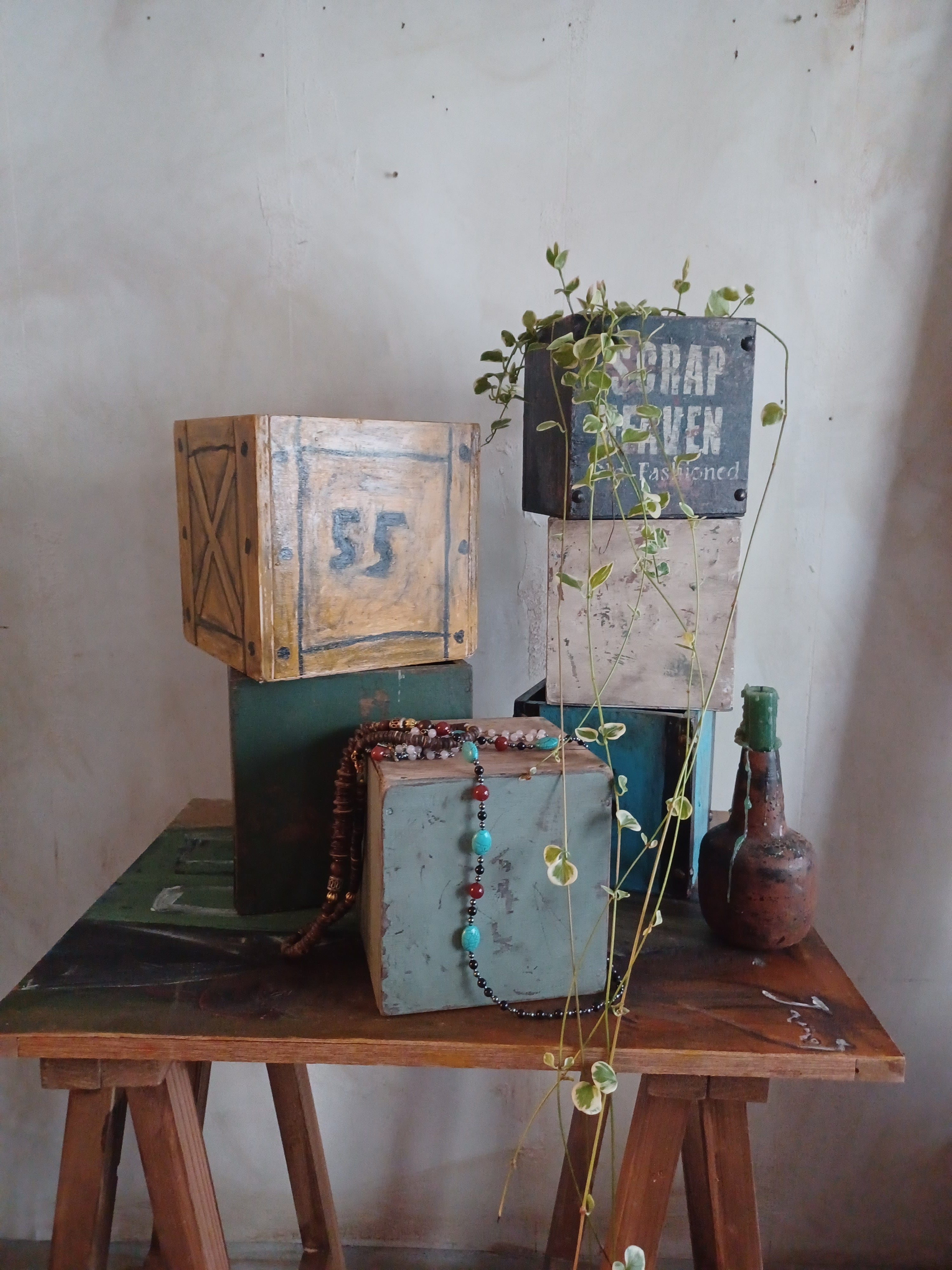 アンティークのように佇む家具たち、絵の具が息づく感情のかけらたち