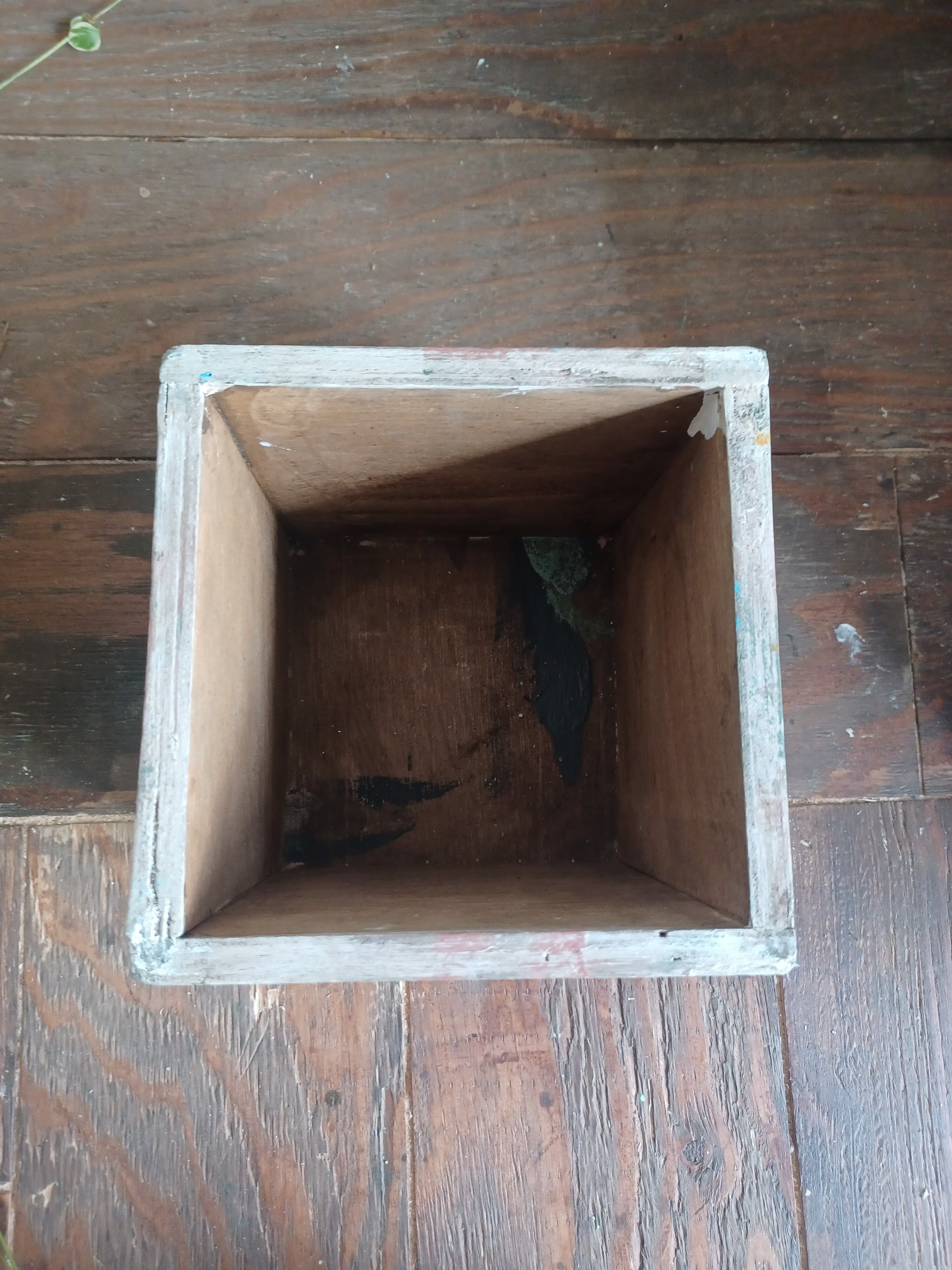 ホワイトのカラーと塗装の剥げから覗くグリーンとピンクのカラーが印象的なボックスです。植物を入れたり雑貨をディスプレイしたり小物の収納にも良いですね。